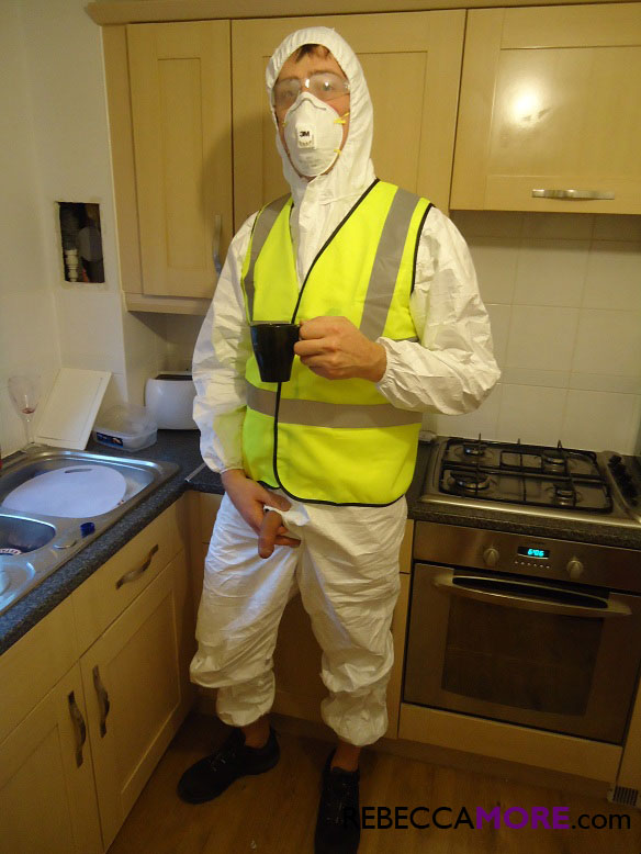 Белокурая милфа Ребекка Мор слизывает сперму с пола после отсоса рабочему-строителю