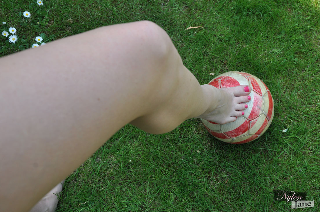 Британка Пиаже Турна лижет и сосет собственные пальцы ног на лужайке