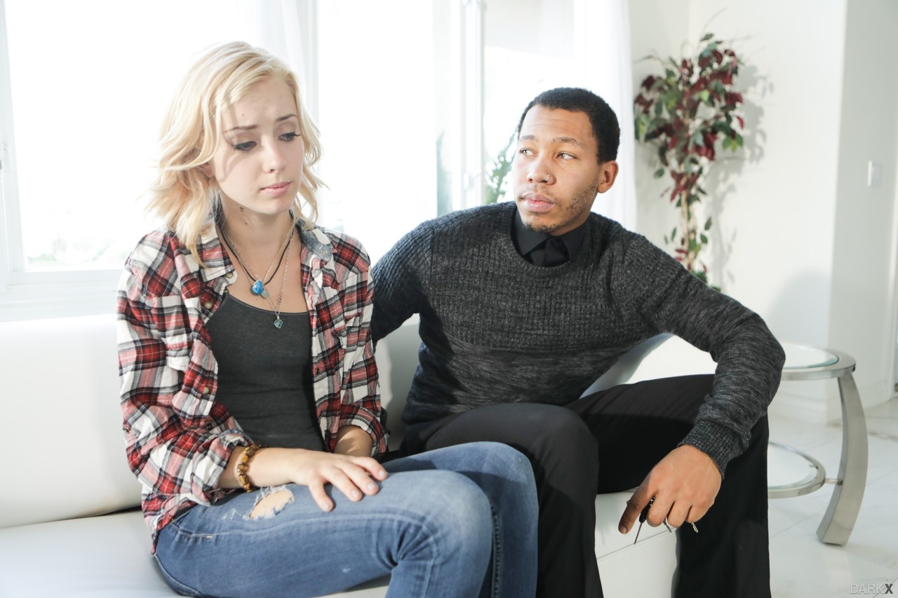 Горячая блондинка шлюха Хейли Рид сосет Чёрный хуй для лица после того, как сделала это раком