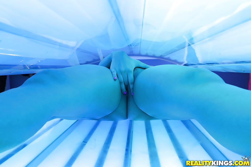 Латиноамериканка Вайолет Старр делает селфи обнаженной в солярии