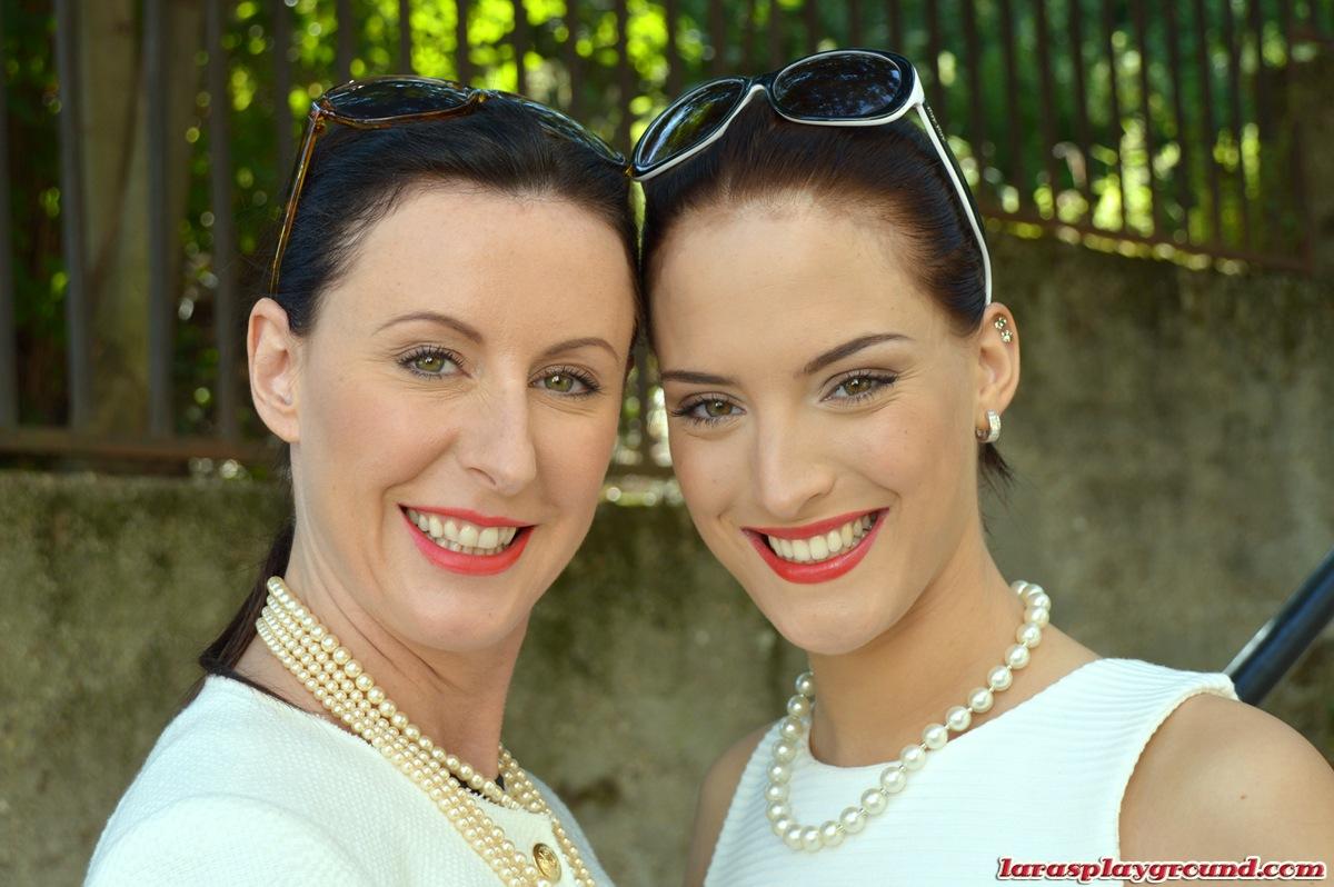 Лесбиянки постарше в юбках и чулках ощупывают друг друга руками в перчатках
