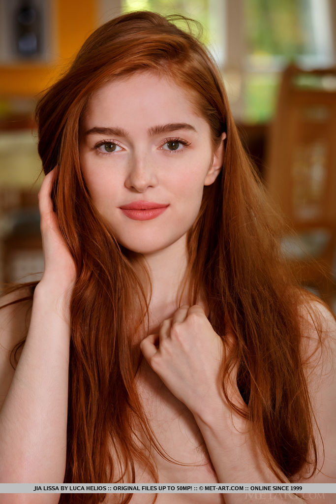 Натуральная рыжеволосая Джиа Лисса изгибает свое гибкое подростковое тело во время сольных поз обнаженной