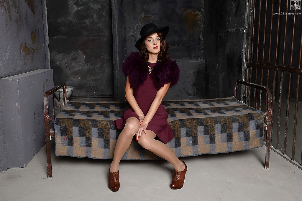 Очаровательная красотка раздевается, тщательно обнажая свои привлекательные сиськи