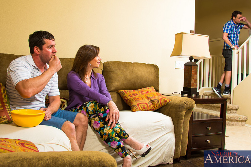 Похотливая пума Сара Джей соблазняет и трахает одного из друзей своего сына