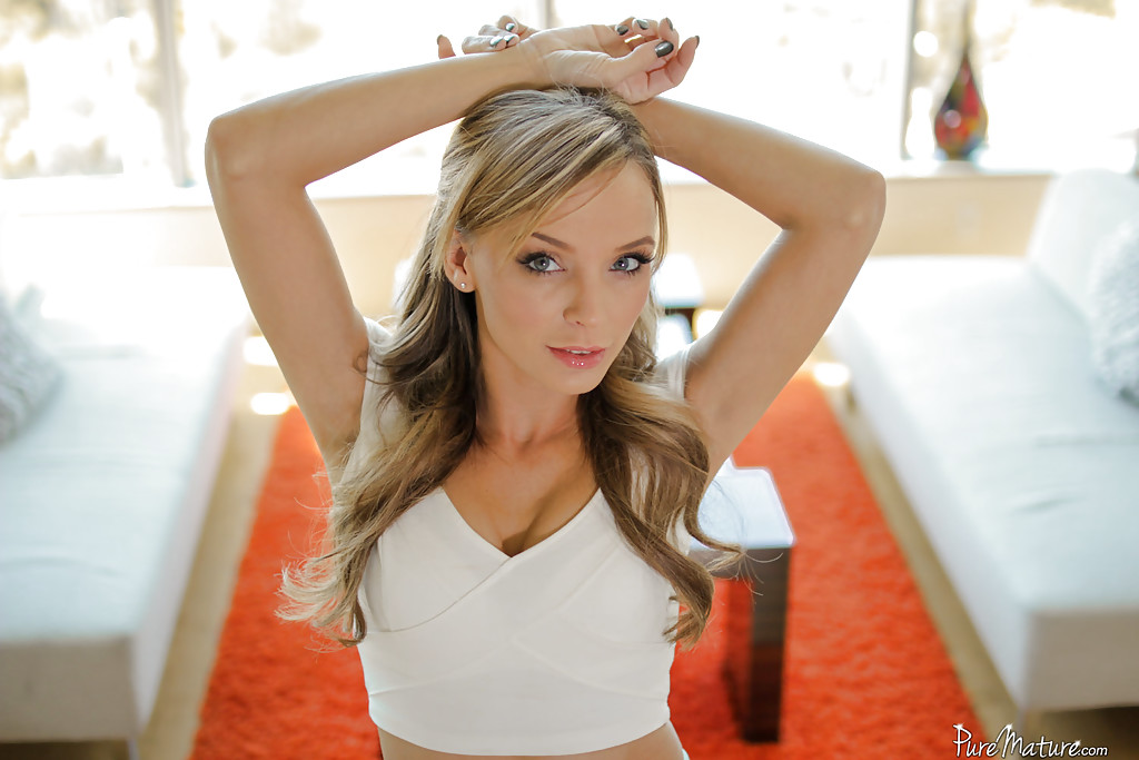 Сексуальная блондинка соло с нетронутым краем, демонстрирующая красивую попку в нижнем белье