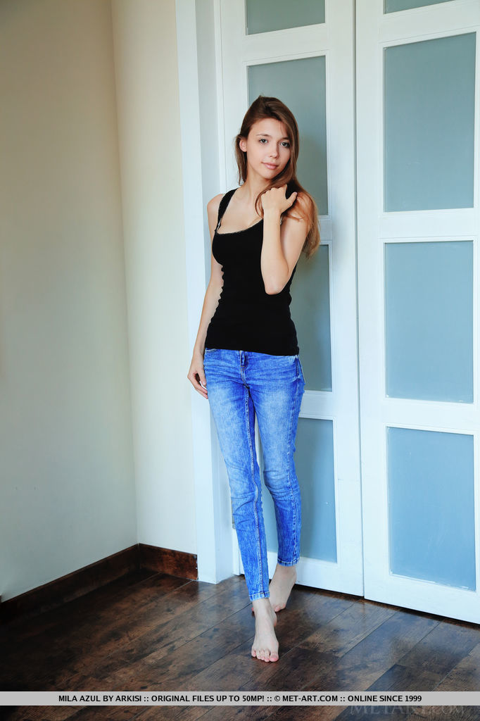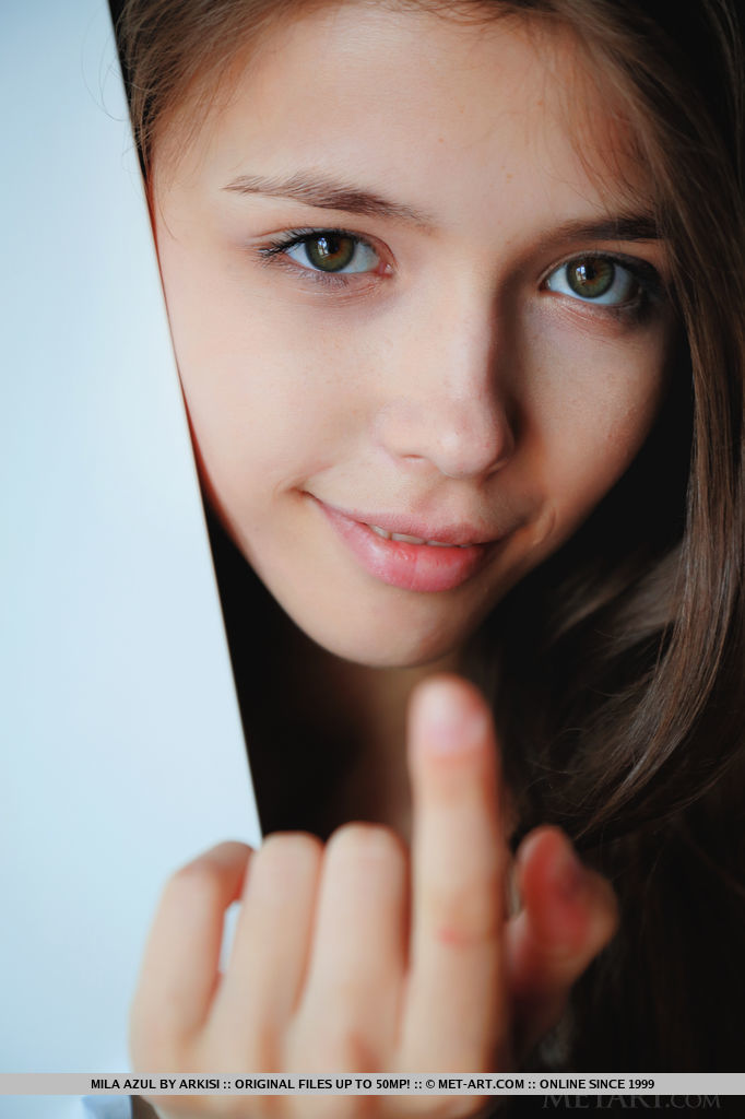 Симпатичная молодая Мила Азул снимает нижнее белье, чтобы поласкать большие сиськи и широко раздвинуть задницу