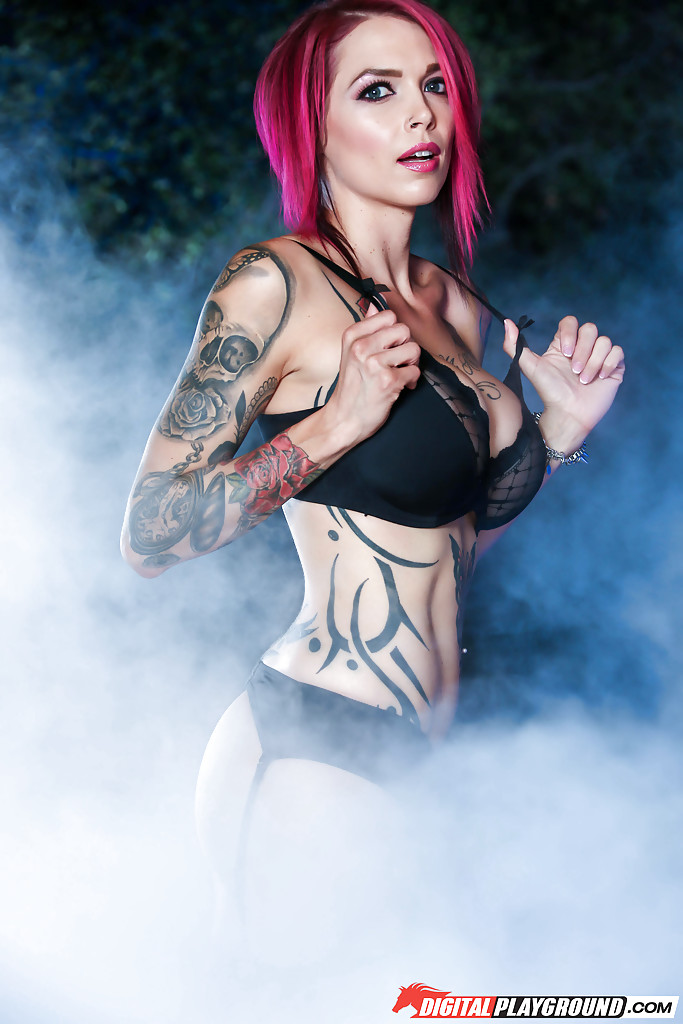 Татуированная рыжеволосая красотка Моник Александер обнажает большие сиськи и проколотые соски
